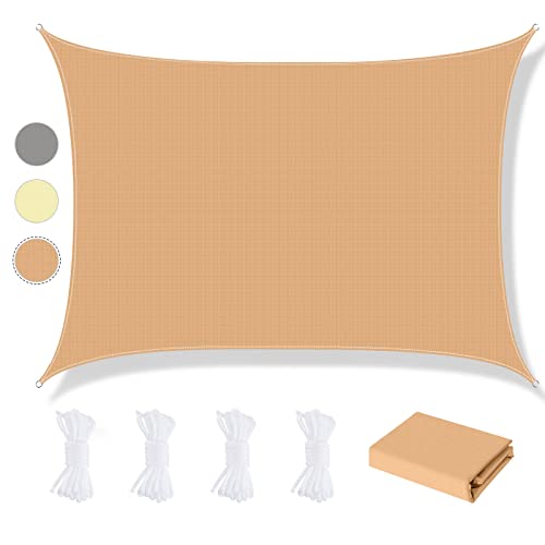 ①【Materiale Impermeabile di Alta Qualità】:ll tenda a vela rettangolare è realizzato in tessuto oxford poliestere 420D, la superficie è super impermeabile. Oltre a questo, è anche a prova di strappo, umidità, muffa, robusto e inodore.