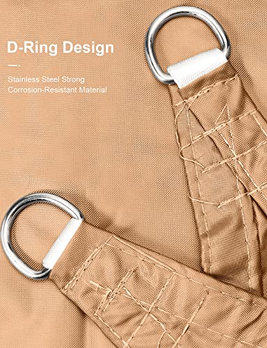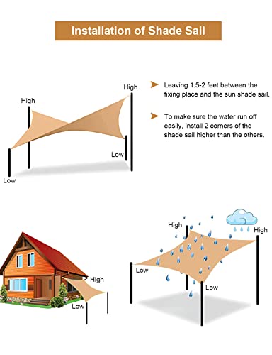 ③【Installazione Facile】: Abbiamo fornito 4 * 2.5m corde in poliestere per la vela ombreggiante rettangolare, inoltre ha D-anelli in acciaio inossidabile ad ogni angolo, si può facilmente installare ovunque. Si consiglia di installare la tenda da sole con un angolo da 20° a 40° per la massima tensione e per aiutare a prevenire la caduta della pioggia.
