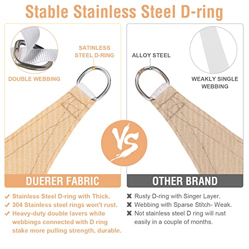 Faclie Da Manutenzione – Pulisci con un detergente delicato o acqua, non strofinare con una spazzola rigida, non metterlo in lavatrice, asciugatrice. Suggerimenti: la tenda a vela parasole Duerer ha i lati curvi per migliorare la forza di trazione e prevenire la caduta.