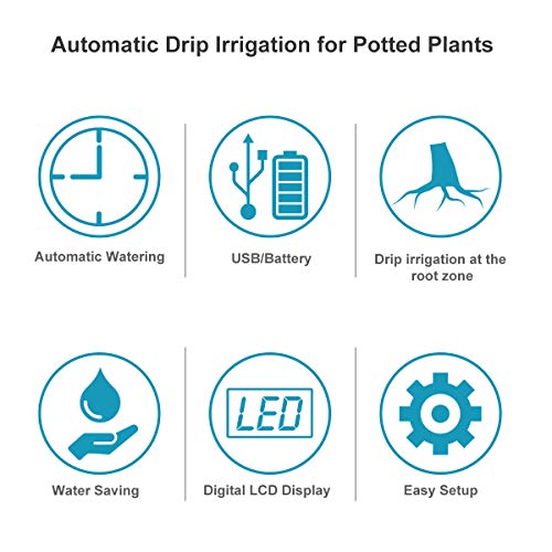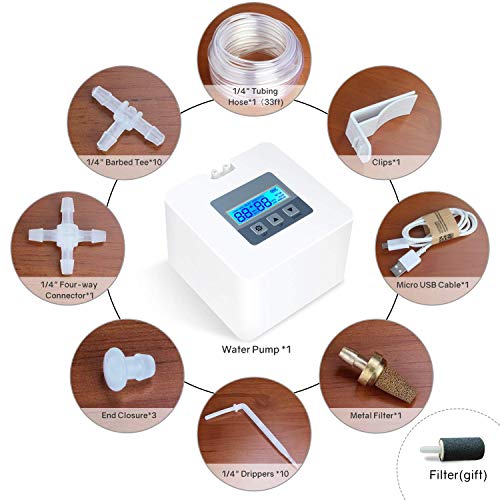 Semplice da usare.Questo sistema di irrigazione a goccia tutto in uno viene installato in meno di 15 minuti, così che si può iniziare subito ad innaffiare le piante.E la pompa di irrigazione è leggera, di dimensioni compatte, con un peso di soli 0,208 kg, ed è facile da fissare al serbatoio dell’acqua senza dover temere che si rovesci.