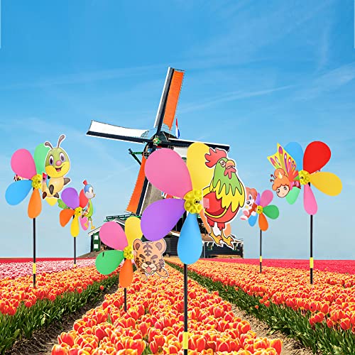 Girandola del vento del giardino 6 pezzi di plastica girandola del vento del mulino a vento del prato inglese del giardino del cortile del patio della decorazione del partito regali stravaganti del parco di modellismo degli animali Puntelli decorativi