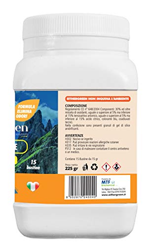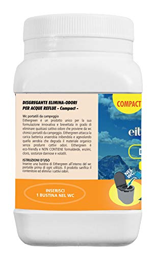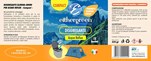 Eithergreen COMPACT Disgregante elimina odori per acque reflue per WC portatili da campeggio – 15 bustine da 15g