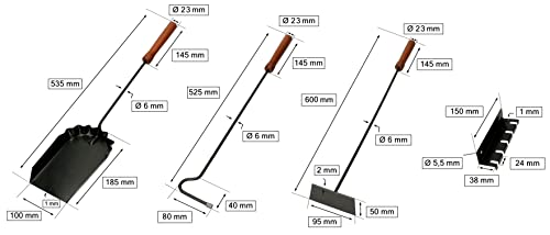 Universale: perfetto per tutti i tipi di camino e forno, è preferibile posizionarlo vicino al camino per avere lo strumento necessario a mano. Il set include una paletta, un raschietto per cenere e un attizzatoio. Adatto per camini, stufe, caldaie, camino e barbecue. Non importa se utilizzate, pale o carbone, con i carboni ogni lavoro è facile e sicuro. Il manico in legno ci permette di utilizzare il nostro camino in modo pulito e sicuro.